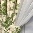 Короткі штори в стилі прованс з ніжним квітковим принтом. Вони створюють затишок і залишають батарею відкритою — ідеальний варіант на зиму, коли хочеться тепла та красивого вигляду вікна одночасно.