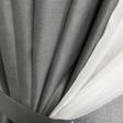Короткі мікровелюрові штори сірого кольору з тюлем на тасьмі